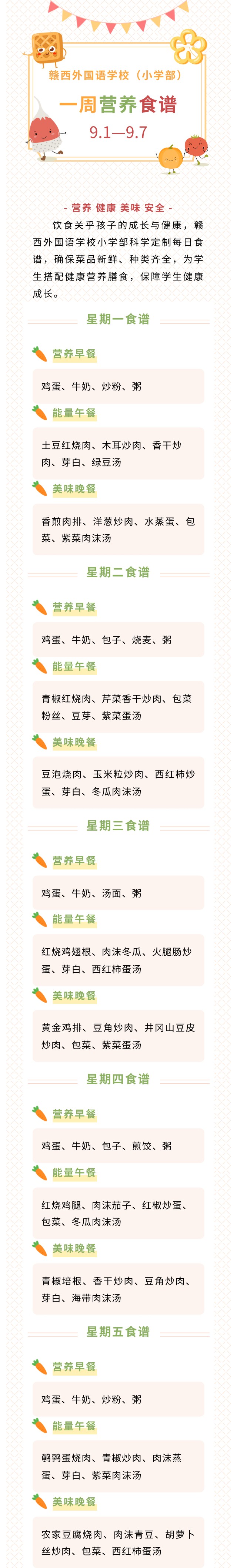 赣西外国语学校小学部一周营养食谱 | 9.1—9.7