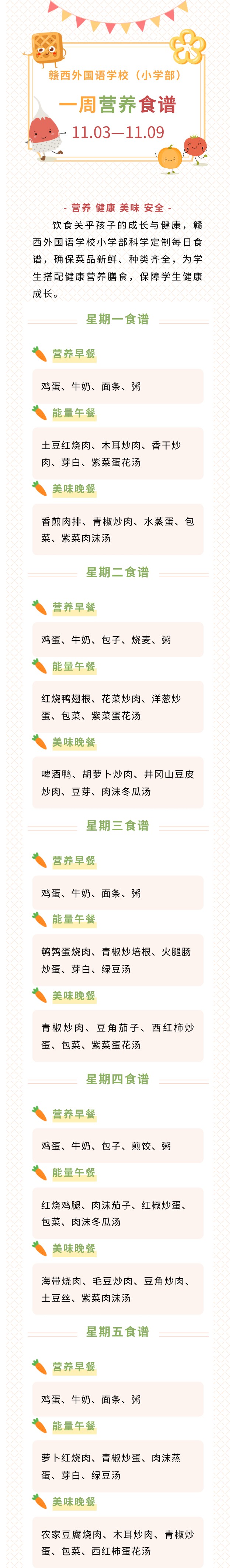 赣西外国语学校小学部一周营养食谱 | 11.03—11.09