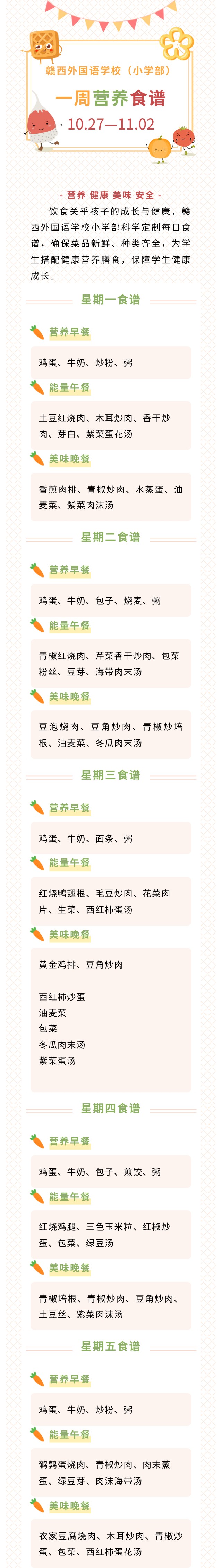赣西外国语学校小学部一周营养食谱 | 10.27—11.02