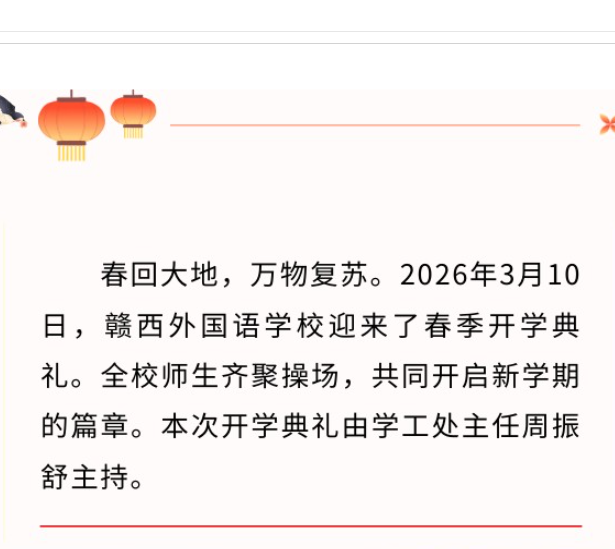 凝心聚力,筑梦启航 | 赣西外国语学校2026年春季开学典礼