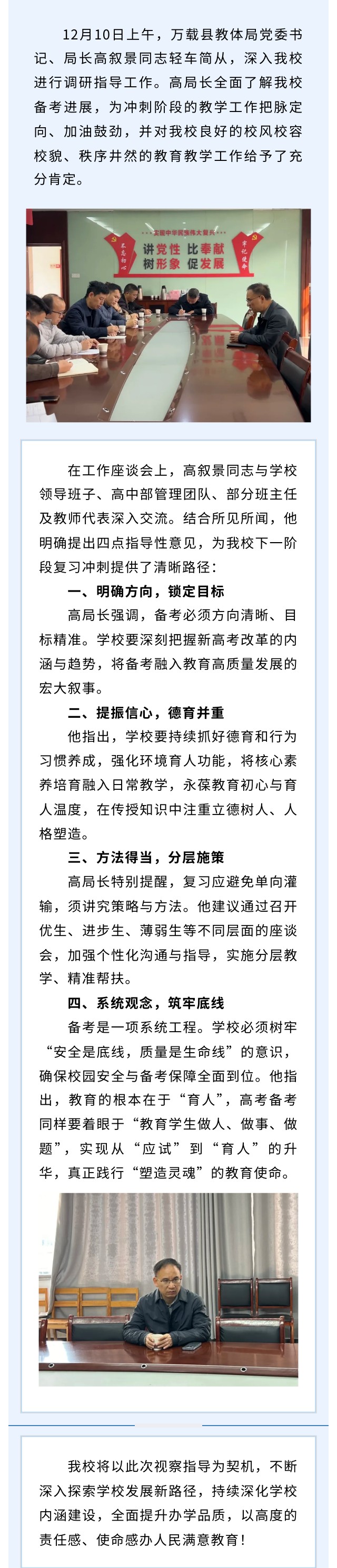 万载县教体局党委书记、局长高叙景同志莅临赣西外国语学校指导工作